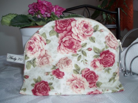 krásná bavlněná látka,vystužená ,podšívka bílá bavlna s puntíkem ( sv. zelený nebo růžový),všitý zip.